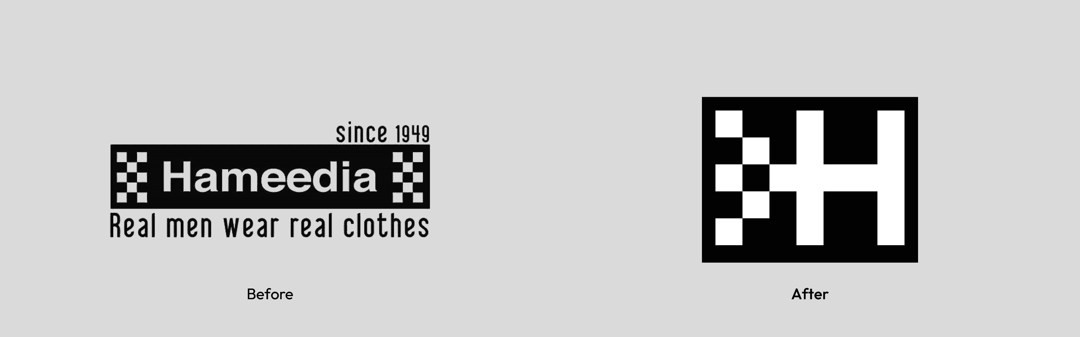 In today’s fast-paced world, people don’t have time to read or process complex logos. Brands must be simple, clear, and memorable to stay relevant. For Hameedia, the checkerboard pattern and black-and-white palette are core brand assets — often imitated by counterfeit brands. Preserving these elements was essential to maintain authenticity, trust, and instant recognition.